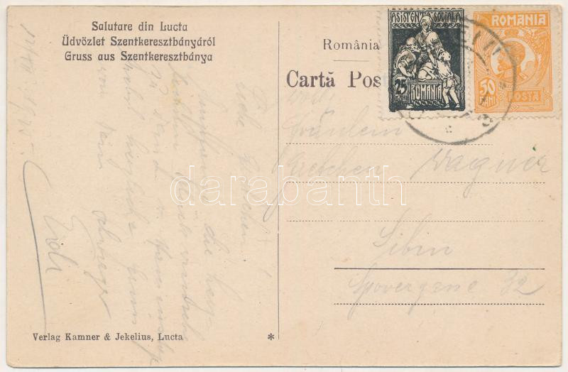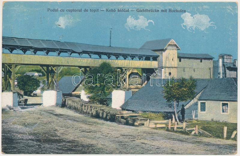 Leírás: 1925 Szentkeresztbánya, Vlahita Noua, Minele Lueta (Szentegyháza, Vlahita); Podul cu cuptorul de topit / Kohó híddal. Kamner & Jekelius kiadása / Gichtbrücke mit Hochofen / blast furnace, bridge (kopott sarkak / worn corners)