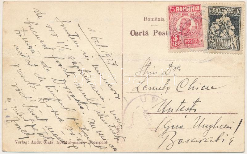 Leírás: 1927 Nagyapold, Grosspold, Apoldu Mare, Apoldu de Sus; Vedere generala / Gesamtansicht / látkép. Andr. Glatz kiadása / general view (fa)
