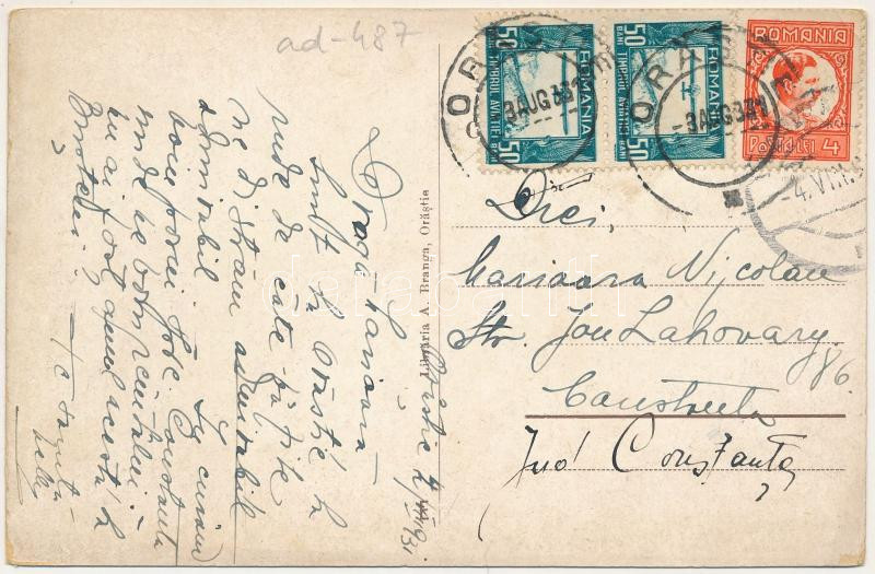 Leírás: 1931 Szászváros, Broos, Orastie; Statuia M. S. Regele Ferdinand / Ferdinánd király szobra, szálloda. A. Branga kiadása / monument, statue, hotel (EK)