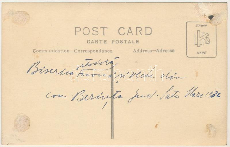 Leírás: 1932 Kővárberence, Berinta; Biserica ortodoxa / Görögkeleti (ortodox) templom / Orthodox church. photo (ragasztónyom / glue marks)