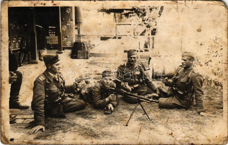 1940 Kisbecskerek, Becicherecu Mic, Kleinbetschkerek (?) (Temes, Timis); román katonák gépfegyverrel / Romanian military, soldiers with machine gun. photo (EM)