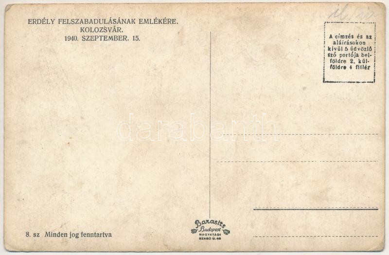 1940 Kolozsvár, Cluj; bevonulás / entry of the Hungarian troops (EK) https://www.darabanth.com/hu/472-Gyorsarveres/472.0/Kepeslapok/Erdely~1500007/1940-Kolozsvar-Cluj-bevonulas-entry-of-the-Hungarian-troops-EK~II3197911