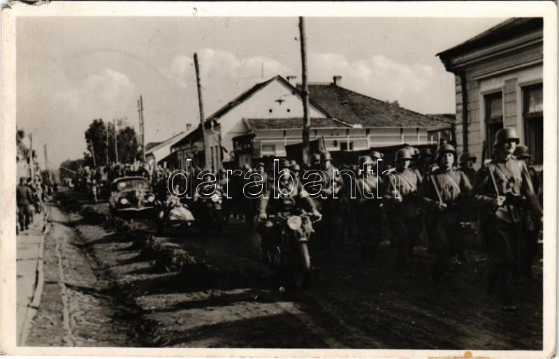 1940 Máramarossziget, Sighetu Marmatiei; bevonulás, katonák motorral, ... https://www.darabanth.com/hu/472-Gyorsarveres/472.0/Kepeslapok/Erdely~1500007/1940-Maramarossziget-Sighetu-Marmatiei-bevonulas-katonak-motorral-automobile-entry-of-the-H~II3168802