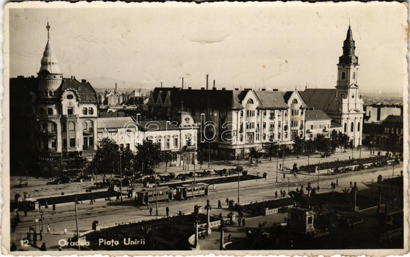 1940 Nagyvárad, Oradea; Piata Unirii / Egyesülés tér, villamos, gyógys... https://www.darabanth.com/hu/472-Gyorsarveres/472.0/Kepeslapok/Erdely~1500007/1940-Nagyvarad-Oradea-Piata-Unirii-Egyesules-ter-villamos-gyogyszertar-uzletek-squar~II3197033