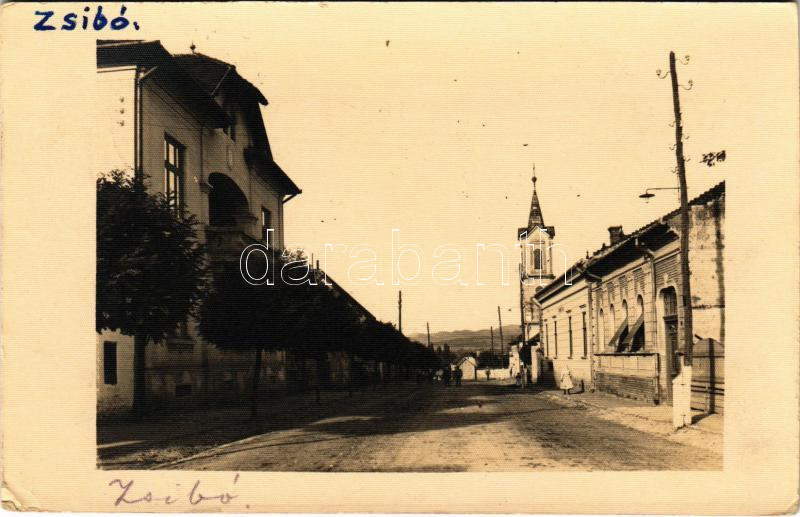 1940 Zsibó, Jibou; utca, templom / street, church. photo (EK) https://www.darabanth.com/hu/472-Gyorsarveres/472.0/Kepeslapok/Erdely~1500007/1940-Zsibo-Jibou-utca-templom-street-church-photo-EK~II3118055