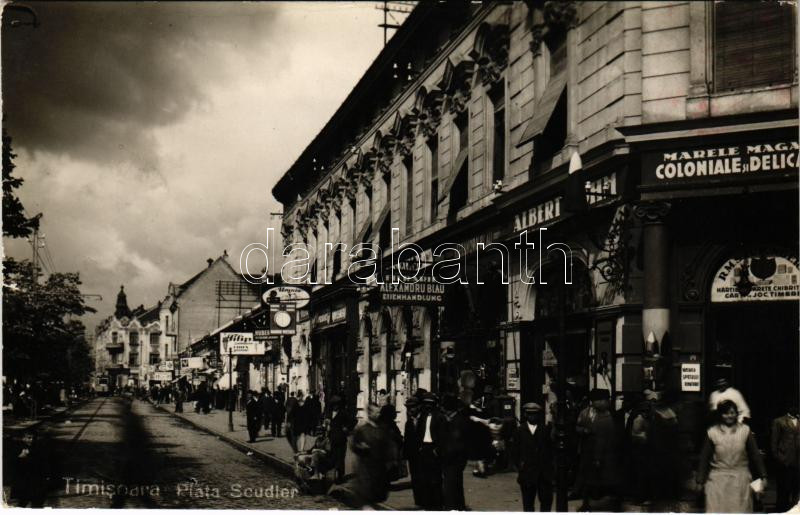 1941 Temesvár, Timisoara; Piata Scudier / tér, Alexandru Blau, Nandor ... https://www.darabanth.com/hu/472-Gyorsarveres/472.0/Kepeslapok/Erdely~1500007/1941-Temesvar-Timisoara-Piata-Scudier-ter-Alexandru-Blau-Nandor-Wiesner-es-Urania-uzlete-~II3198101