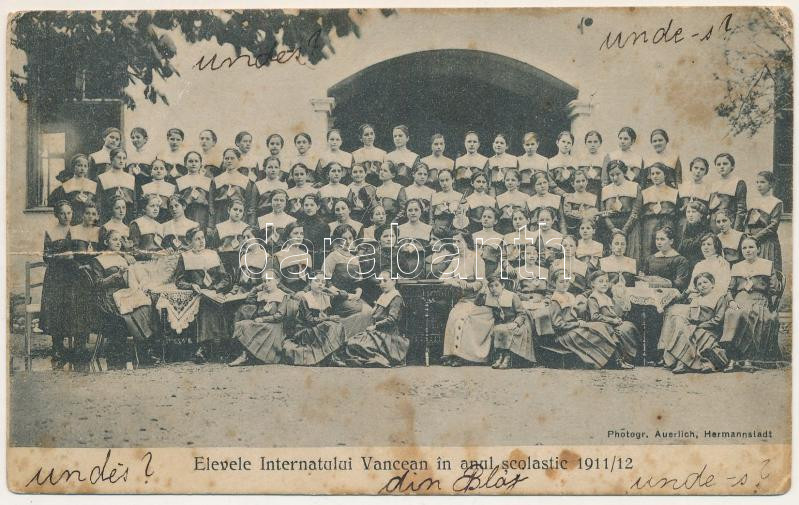 Leírás: Balázsfalva, Blasendorf, Blaj; Elevele Internatului Vancean in anul scolastic 1911/12 / Leányiskola diákjai 1911/12-ben / girls' school students. Photogr. Auerlich (Hermannstadt) (fa)
