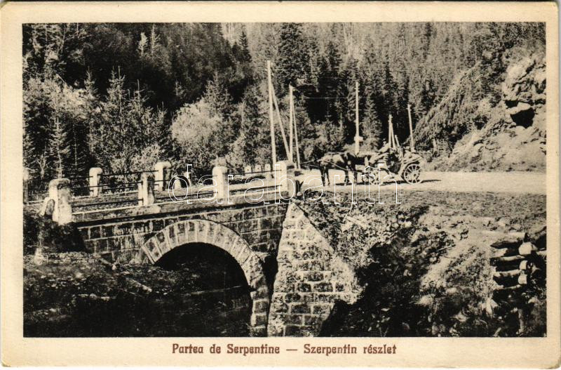 Leírás: Borszék, Borsec; Szerpentin részlet. Eisig Jakob kiadása / Partea de Serpentine / serpentine road, bridge (fl)