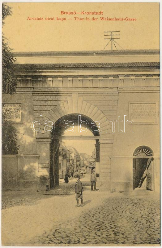Brassó, Kronstadt, Brasov; Árvaház utcai kapu. W.L. 100. / Thor in der... https://www.darabanth.com/hu/472-Gyorsarveres/472.0/Kepeslapok/Erdely~1500007/Brasso-Kronstadt-Brasov-Arvahaz-utcai-kapu-WL-100-Thor-in-der-Waisenhaus-Gasse-city-ga~II3198909