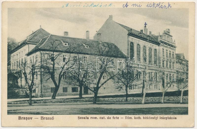 Brassó, Kronstadt, Brasov; Scoala rom. cat. de fete / Római katolikus ... https://www.darabanth.com/hu/472-Gyorsarveres/472.0/Kepeslapok/Erdely~1500007/Brasso-Kronstadt-Brasov-Scoala-rom-cat-de-fete-Romai-katolikus-leanyiskola-Foto-Keresztes~II3198883