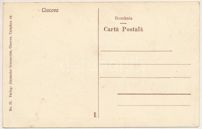 Leírás: Csák, Csákova, Ciacova; Primaria si Monumentul Eroilor morti 1914-1918 / Gemeindehaus und Heldendenkmal gefallen 1914-1918 / Városháza, első világháborús hősök szobra. Alexander Simonovits kiadása / town hall, WWI heroes' monument (fl)