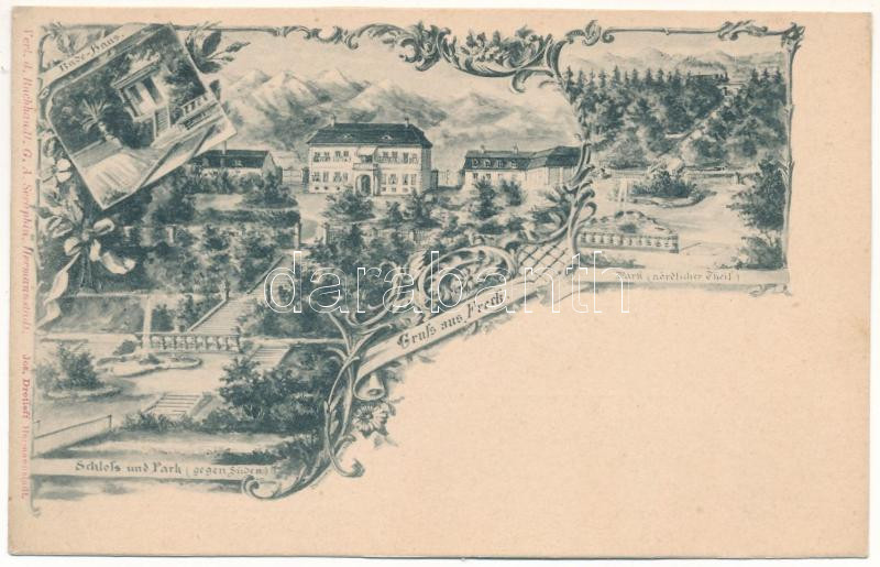Leírás: Felek, Freck, Avrig; Kastély, park, fürdő. G. A. Seraphin, Jos. Drotleff / Badehaus, Schloss und Park / castle park with spa. Art Nouveau, floral