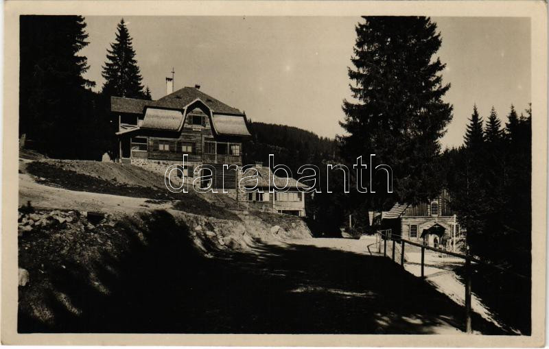 Leírás: Hargitafürdő, Hargita-fürdő, Harghita-Bai; Sólyom villa és a kápolna / villa, chapel