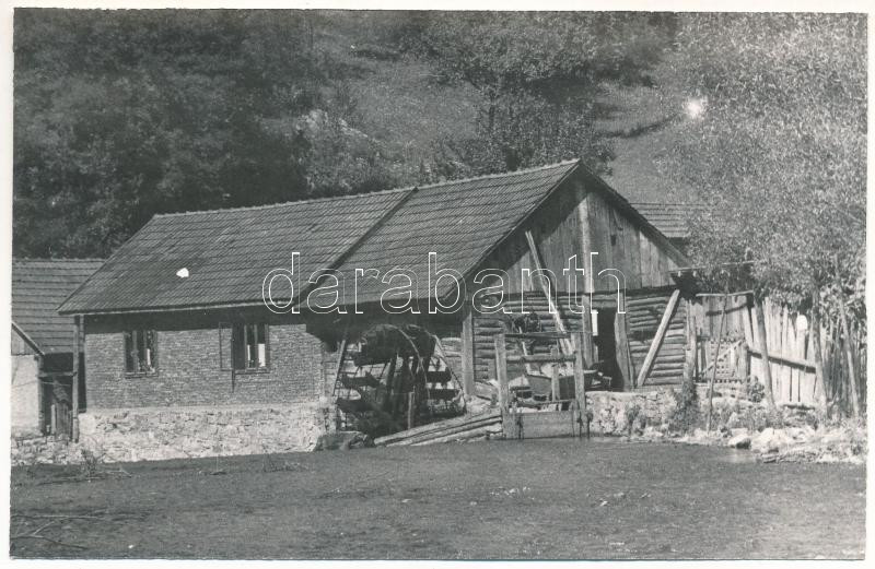 Leírás: Ismeretlen település, vízimalom a Béga partján (?) / Moara pe Bega / watermill. photo (non PC) (vágott / cut)