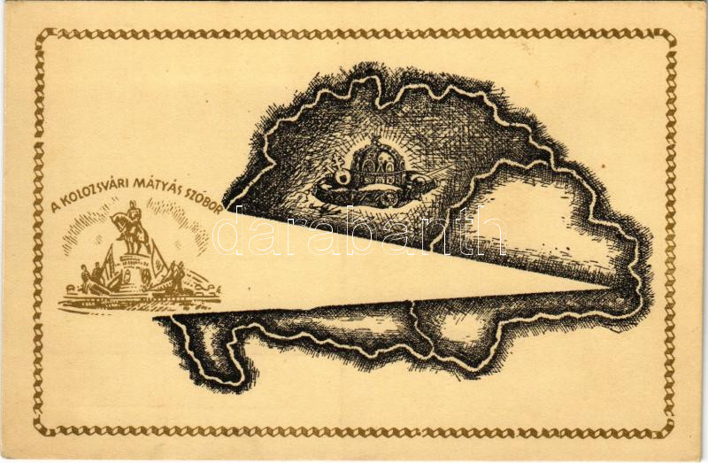 Leírás: Kolozsvár, Cluj; Mátyás szobor. Magyar Termék irredenta lap Trianon térképpel / monument. Hungarian irredenta with trianon map