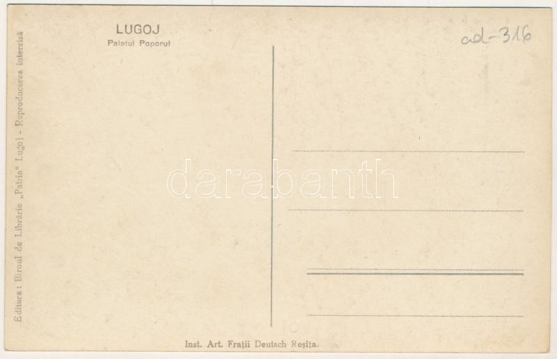 Lugos, Lugoj; Palatul Poporul / Poporul palota, Hegyesi és Stern üzlet... https://www.darabanth.com/hu/472-Gyorsarveres/472.0/Kepeslapok/Erdely~1500007/Lugos-Lugoj-Palatul-Poporul-Poporul-palota-Hegyesi-es-Stern-uzlete-street-view-palace-sho~II3159892