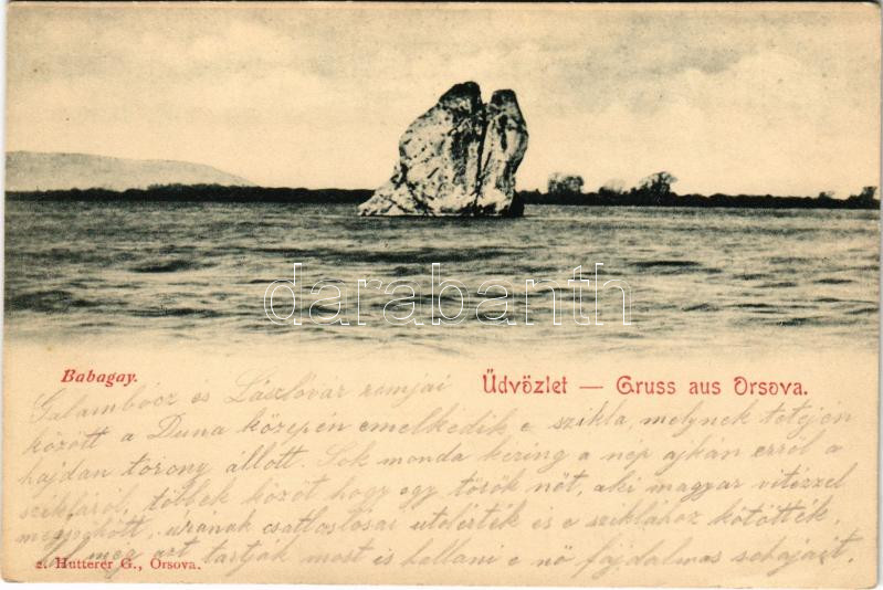 Orsova, Al-Duna, Babagája szikla. Hutterer G. kiadása / Der Babagay-Fe... https://www.darabanth.com/hu/472-Gyorsarveres/472.0/Kepeslapok/Erdely~1500007/Orsova-Al-Duna-Babagaja-szikla-Hutterer-G-kiadasa-Der-Babagay-Felsen-Babagaj-rock~II3199844