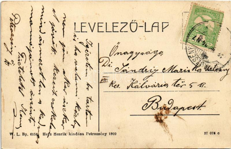Petrozsény, Petrosani; Templom utca, Bányatársulati tiszti kaszinó. W.L. Bp. 6152. Herz Henrik kiadása 1909. / street, officer casino of the mining company (fl)