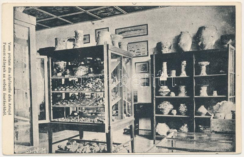 Sepsiszentgyörgy, Sfantu Gheorghe; Muzeul National Sacuesc, Vase pictate din sapaturile dela Ariusd / Székely Nemzeti Múzeum belső, festett edények az erősdi ásatásokból / Secui national museum interior, painted pots from Ariusd (fl)