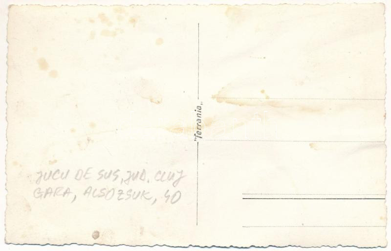 Leírás: Zsuk, Alsózsuk, Jucu (Kolozsvár, Cluj); vasútállomás / railway station. photo (felületi sérülés / surface damage)