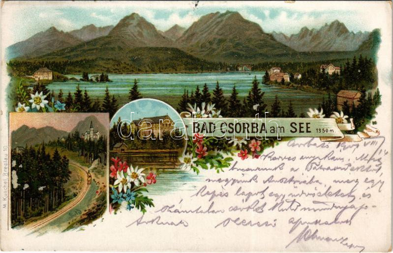 1901 Tátra, Magas-Tátra, Vysoké Tatry; Bad Csorba am See / Csorba-tói fogaskerekű vasút / Strbské pleso cogwheel railway. M. Kuschel Art Nouveau, floral, litho (EK)