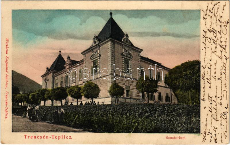 Leírás: 1904 Trencsénteplic, Trencianske Teplice; szanatórium. Wertheim Zsigmond kiadása / sanatorium (fl)