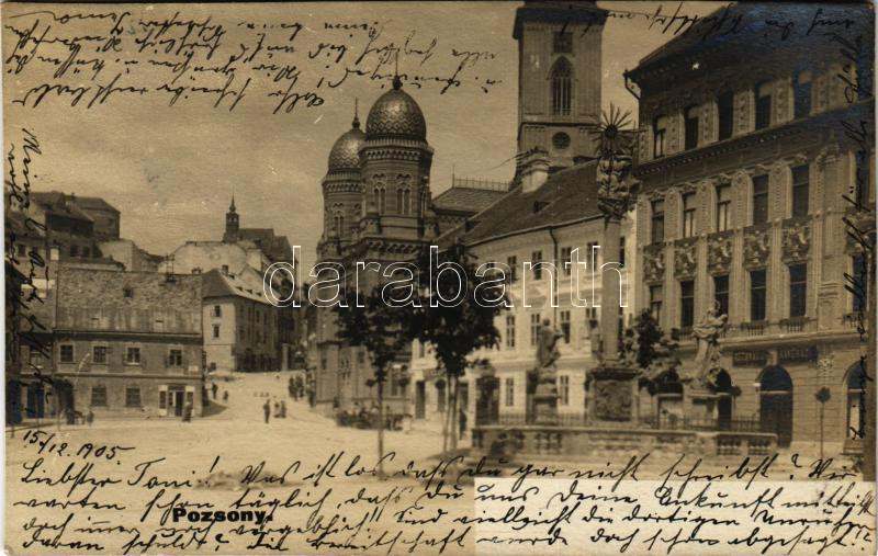 1905 Pozsony, Pressburg, Bratislava; Hal tér, zsinagóga, kávéház, Szen... https://www.darabanth.com/hu/472-Gyorsarveres/472.0/Kepeslapok/Felvidek~1500008/1905-Pozsony-Pressburg-Bratislava-Hal-ter-zsinagoga-kavehaz-Szentharomsag-szobor-squa~II3198135