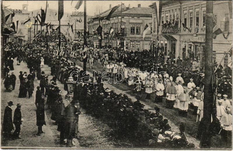 1906 Kassa, Kosice; A temetési szertartást végző főpapok Kassán 1906. október 29-én II. Rákóczi Ferenc és bujdosó társai hamvainak hazahozatala és újratemetése alkalmából. Nyulászi Béla kiadása / funeral (reburial) ceremony of Rákóczi and his companion (EK)
