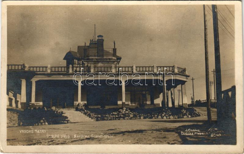 Leírás: 1921 Tátra, Magas-Tátra, Vysoké Tatry; Strbské pleso, Kavárna Grandhotelu / Csorba-tó, kávéház / lake, café. J. Ossko (EK)