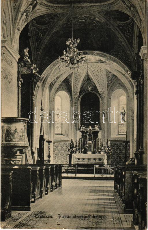 1922 Trencsén, Trencín; Plébániatemplom hajója, belső / church interio... https://www.darabanth.com/hu/472-Gyorsarveres/472.0/Kepeslapok/Felvidek~1500008/1922-Trencsen-Trencin-Plebaniatemplom-hajoja-belso-church-interior-EK~II3197886