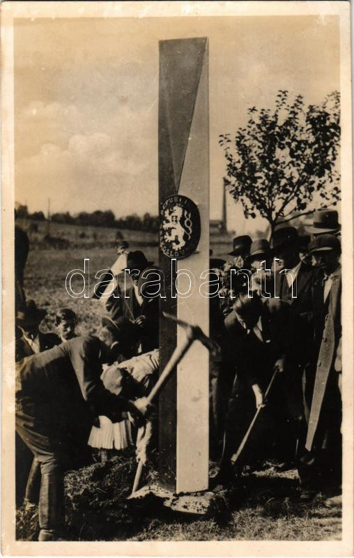 Leírás: 1938 Ipolyság, Sahy; bevonulás. Döntik a trianoni határokat / entry of the Hungarian troops, crushing the column of the Czechoslovak Republic (fl)