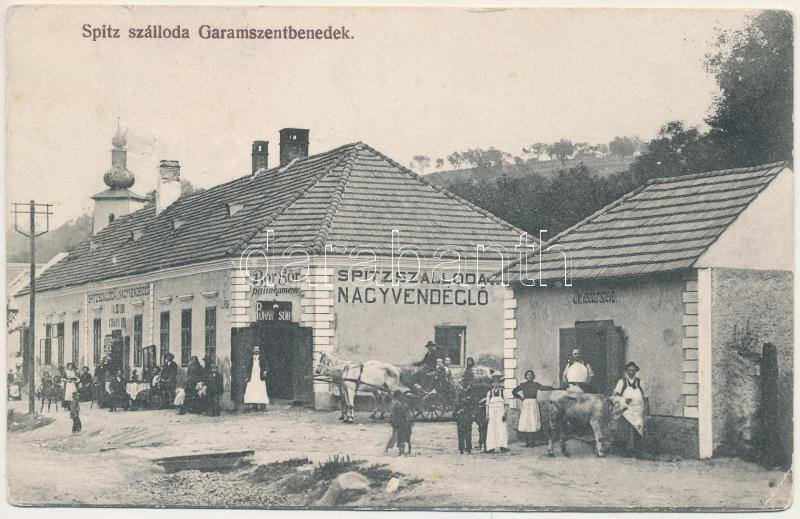 Leírás: Garamszentbenedek, Sankt Benedikt, Sväty Benadik, Hronsky Benadik; Spitz szálloda és nagyvendéglő, étterem, bor, sör és pálinka mérés, mészárszék / hotel, restaurant, butcher shop (b)