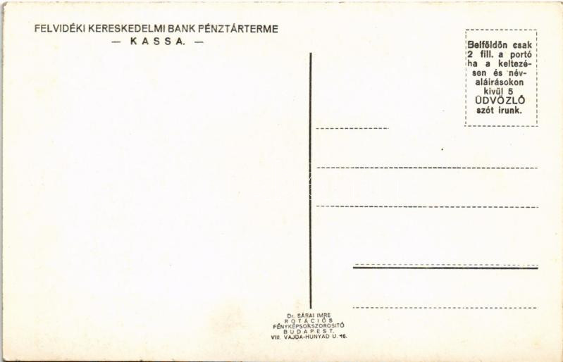 Kassa, Kosice; Felvidéki Kereskedelmi Bank pénztárterme, belső / bank ... https://www.darabanth.com/hu/472-Gyorsarveres/472.0/Kepeslapok/Felvidek~1500008/Kassa-Kosice-Felvideki-Kereskedelmi-Bank-penztarterme-belso-bank-interior~II3045559