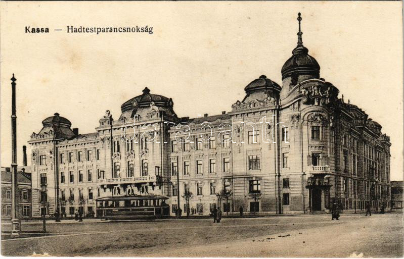 Kassa, Kosice; Hadtestparancsnokság, villamos / K.u.K. military headqu... https://www.darabanth.com/hu/472-Gyorsarveres/472.0/Kepeslapok/Felvidek~1500008/Kassa-Kosice-Hadtestparancsnoksag-villamos-KuK-military-headquarters-tram-EB~II3177059
