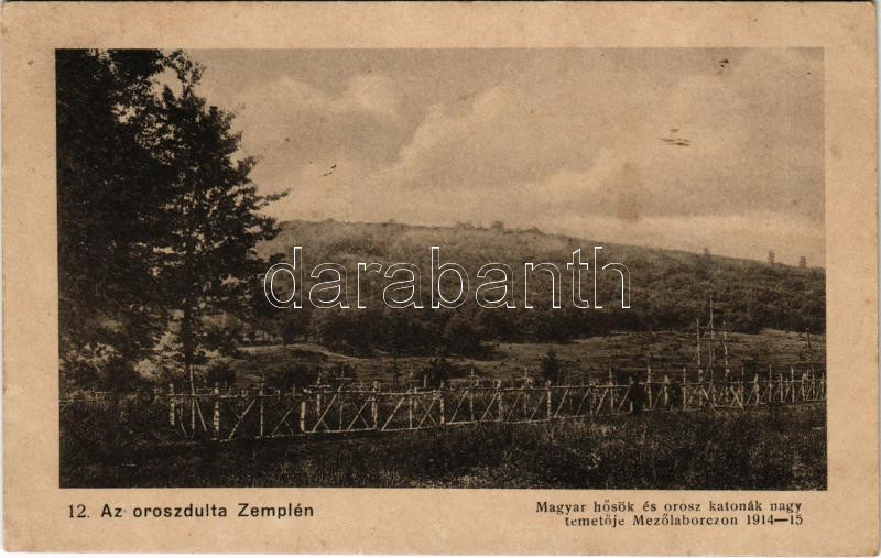 Mezőlaborc, Medzilaborce; Az oroszdulta Zemplén 12., Magyar hősök és orosz katonák nagy temetője 1914-15. Varga Bertalan kiadása / WWI ruins after the Russian attack, cemetery of the Hungarian heroes and Russian soldiers (fl)
