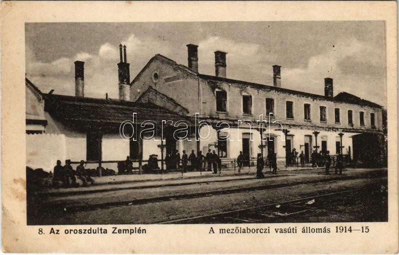 Mezőlaborc, Medzilaborce; lerombolt vasútállomás 1914-15. Az oroszdúlta Zemplén. Varga Bertalan kiadása / Bahnhof / destroyed railway station after the Russian attack (EK)
