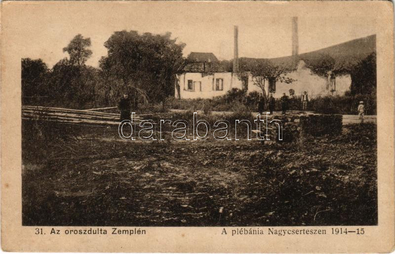 Nagycsertész, Certizné; Az oroszdúlta Zemplén 31., A plébánia romjai az orosz invázió után 1914-15. Varga Bertalan kiadása / WWI military, ruins of the rectory after the Russian attack (EB)