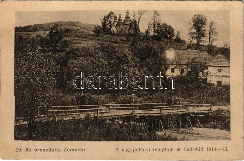 Nagypolány, Velká Polana; Az oroszdúlta Zemplén 26., A templom és a ha... https://www.darabanth.com/hu/472-Gyorsarveres/472.0/Kepeslapok/Felvidek~1500008/Nagypolany-Velka-Polana-Az-oroszdulta-Zemplen-26-A-templom-es-a-hadi-hid-1914-15-Varga-Be~II3194551