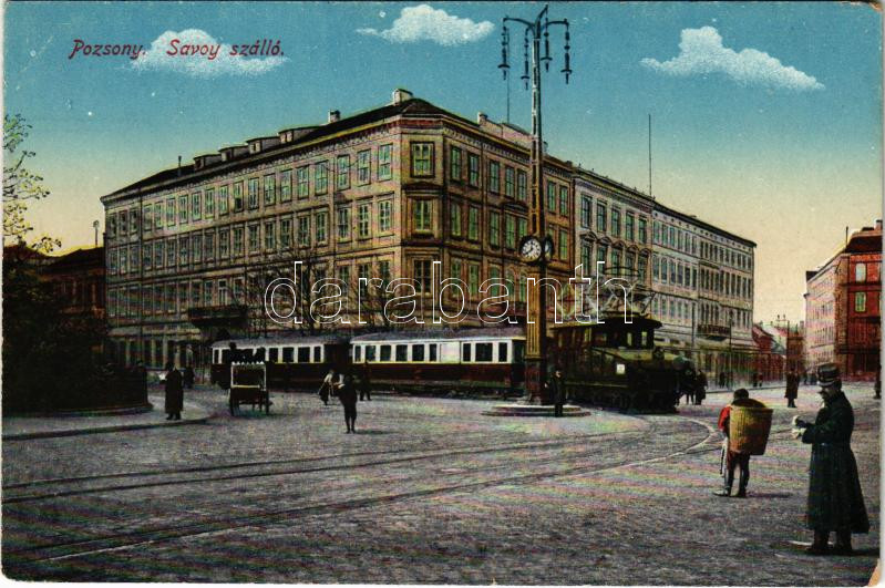 Pozsony, Pressburg, Bratislava; Savoy szálloda, Pozsony-Bécs villamos ... https://www.darabanth.com/hu/472-Gyorsarveres/472.0/Kepeslapok/Felvidek~1500008/Pozsony-Pressburg-Bratislava-Savoy-szalloda-Pozsony-Becs-villamos-vasut-vonat-Pressburg-W~II3198150