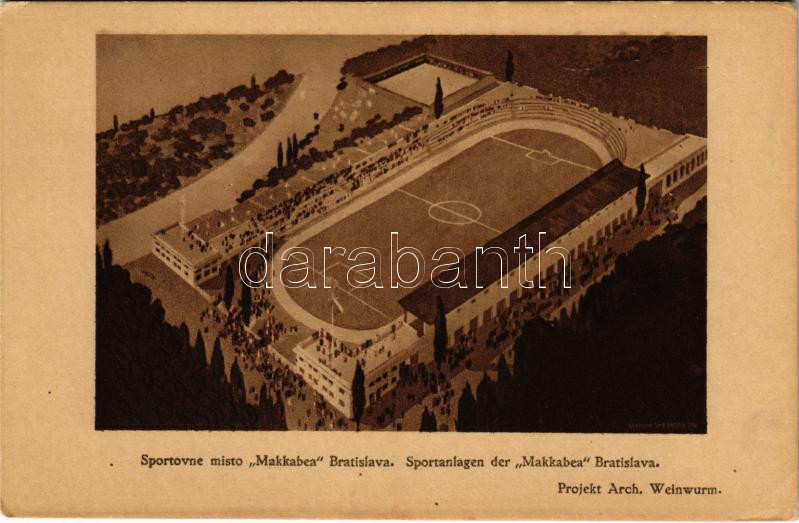 Leírás: Pozsony, Pressburg, Bratislava; Sportvne misto Makkabea / Sportanlagen. Projekt Arch. Weinwurm / sportpálya, foci pálya, labdarúgás / sport field, football field