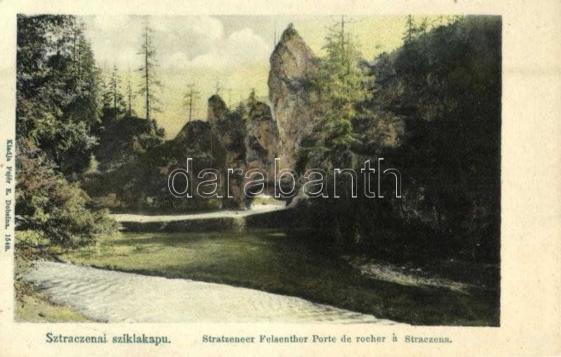Leírás: Sztracena, Stratená; Sztraczenai sziklakapu. Kiadja Fejér E. Dobsina 1548. / Stratzeneer Felsenthor / rock gate