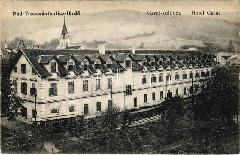 Trencsénteplic, Trencianske Teplice; Garni szálloda, villamos. Werthei... https://www.darabanth.com/hu/472-Gyorsarveres/472.0/Kepeslapok/Felvidek~1500008/Trencsenteplic-Trencianske-Teplice-Garni-szalloda-villamos-Wertheim-Zsigmond-kiadasa-Hotel-~II3177453