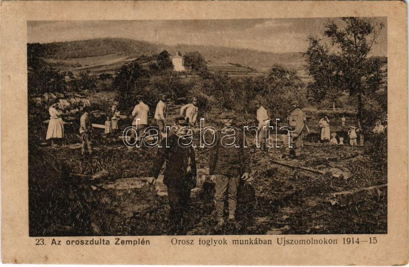 Újszomolnok, Szmolnik, Smolník (Takcsány, Stakcín); Az oroszdúlta Zemplén 23., orosz hadifoglyok munkában 1914-15. Varga Bertalan kiadása / WWI Russian POWs at work after their attack (EB)