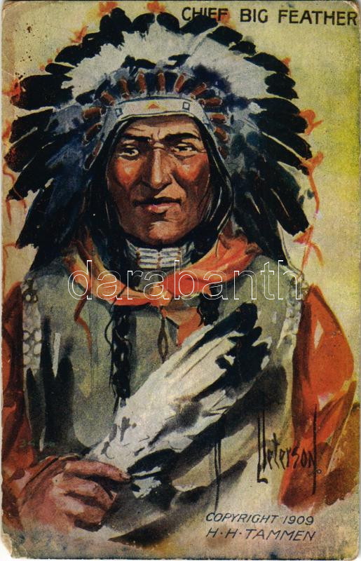 Chief Big Feather. American indian folklore. H. H. Tammen (wet damage) https://www.darabanth.com/hu/472-Gyorsarveres/472.0/Kepeslapok/Folklor~1500032/Chief-Big-Feather-American-indian-folklore-H-H-Tammen-wet-damage~II3194998