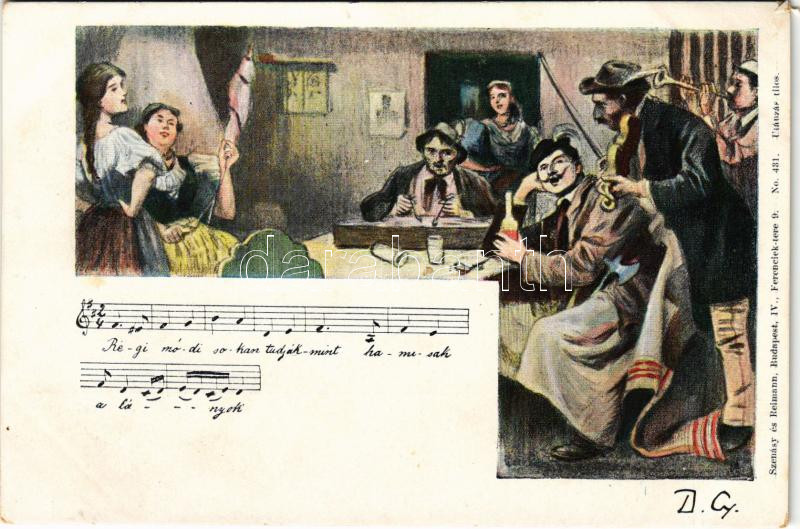 Leírás: Régi módi sokan tudják, mint hamisak a lányok... Magyar nótás folklór művészlap. Szénásy és Reimann kiadása / Hungarian folklore art postcard (EK)