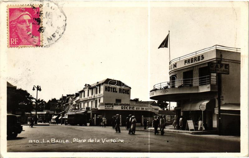 La Baule, Place de la Victoire, Hotel Riche, Buffet des Autocars, Café... https://www.darabanth.com/hu/472-Gyorsarveres/472.0/Kepeslapok/Franciaorszag~1500050/La-Baule-Place-de-la-Victoire-Hotel-Riche-Buffet-des-Autocars-Cafe-Billaud--automobiles-TCV-~II1334743