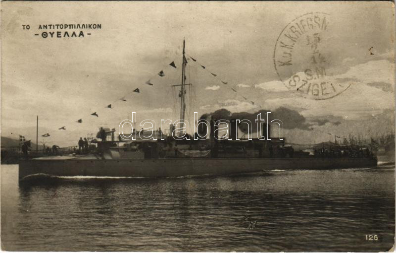 Leírás: 1914 Royal Hellenic Navy. Greek destroyer THYELLA (ragasztónyom / glue marks)