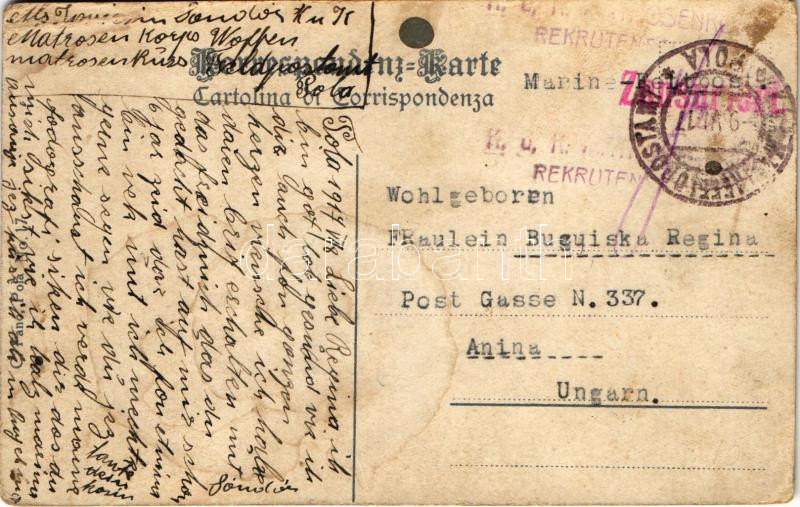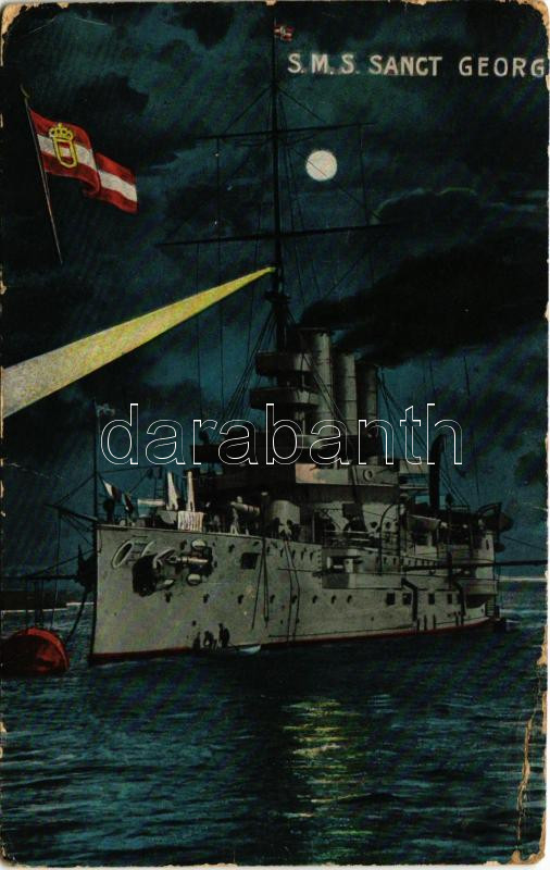1917 SMS Sankt Georg osztrák-magyar páncélos cirkáló este / K.u.K. Kriegsmarine Panzerkreuzer / Austro-Hungarian Navy, SMS Sankt Georg armored cruiser at night, naval flag. G. Fano, Pola 1910. No. 17. (kopott sarkak / worn corners)