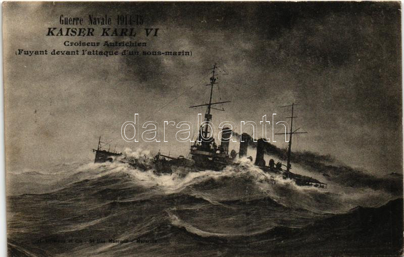 Guerre Navale 1914-15 Croiseur Autrichien Fuyant devant l'attaque d'un sous-marin / SMS Kaiser Karl VI. az Osztrák-Magyar Haditengerészet VI. Károly-osztályú páncélos cirkálója / WWI Austro-Hungarian Navy SMS Kaiser Karl VI armored cruiser (fl)