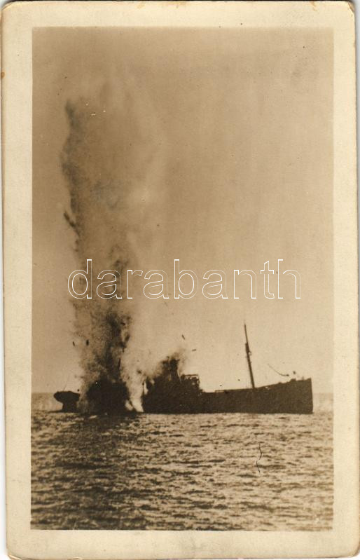 Leírás: Osztrák-magyar haditengerészet torpedózás közben / K.u.K. Kriegsmarine / WWI Austro-Hungarian Navy torpedoing an enemy ship. photo (Rb)